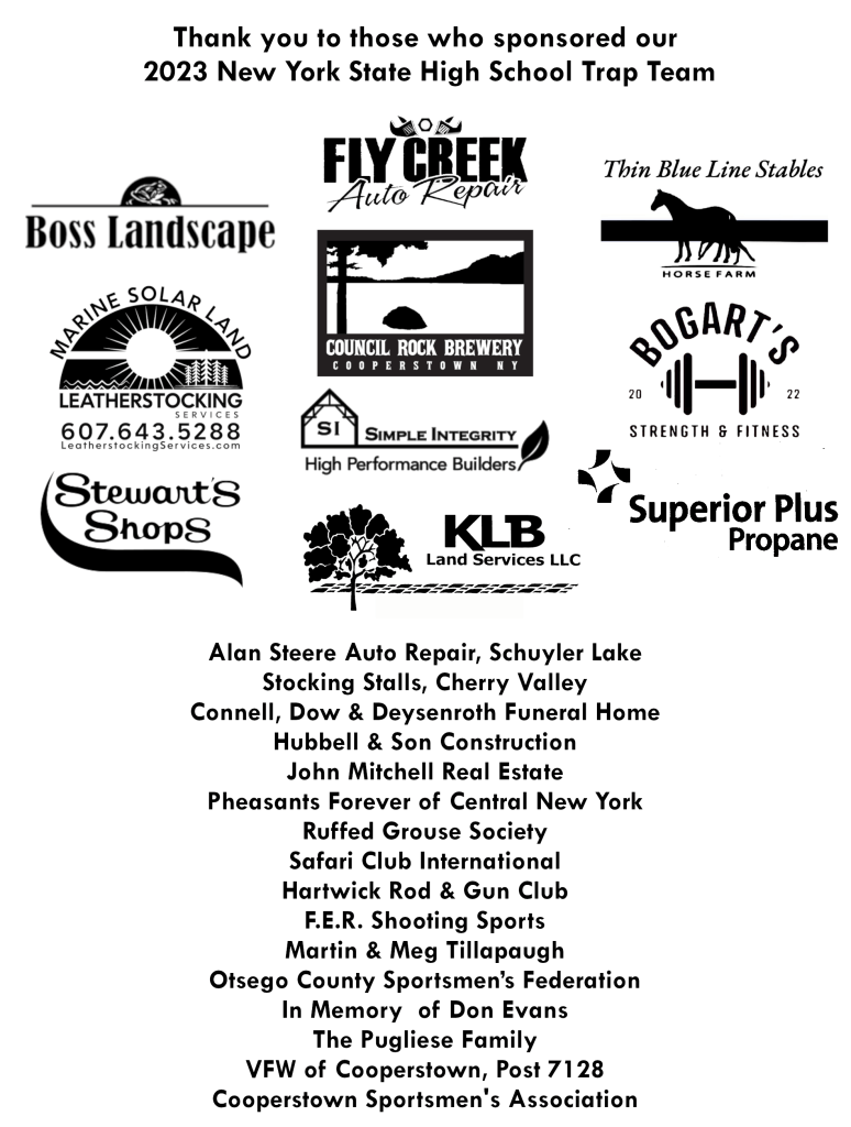 Tournament participation and our youth trap program has been made possible because of the generosity of our sponsors. Through sponsorships we have raised $7,300 this year!!! Please consider supporting those that support us!